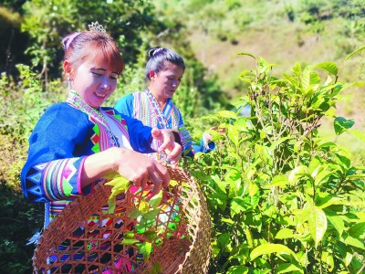 曼班三队拉祜族妇女在采摘茶叶。光明日报记者 张勇摄