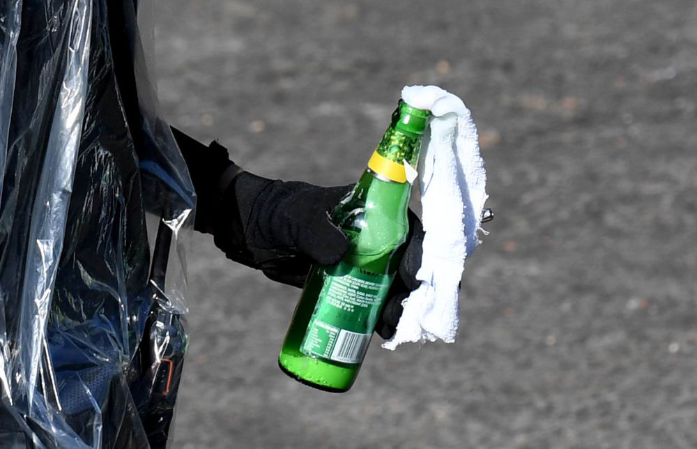暴徒在香港理工大学外手持汽油弹,准备实施暴力犯罪(2019年11月17日摄)
