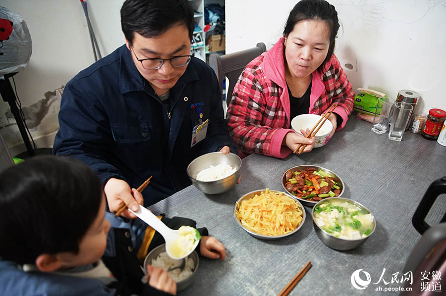 徐琪的午休就是和妻儿一起吃顿午饭。人民网 李希蒙摄