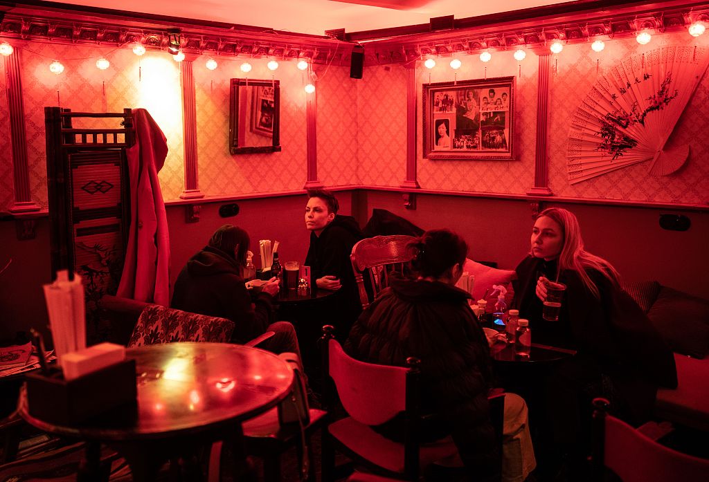 当地时间2021年2月11日,俄罗斯首都莫斯科,市民在当地一家茶馆内品茶庆祝大年三十。