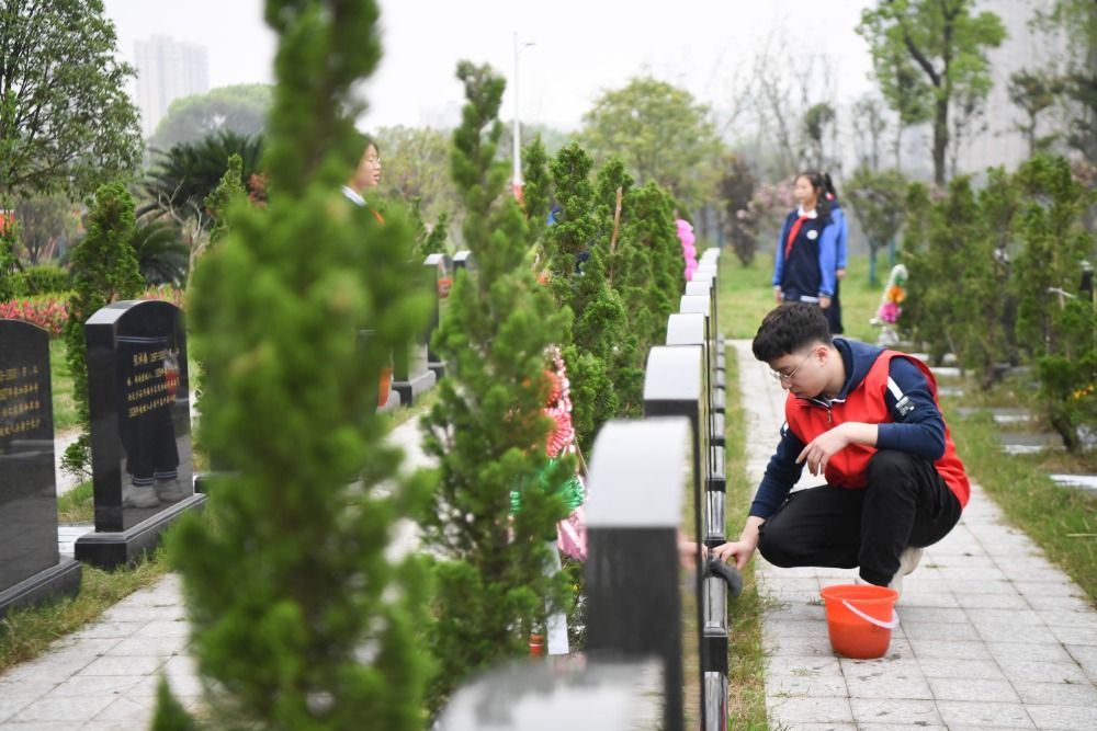 当日,在湖南省长沙市,共青团长沙市天心区委员会、天心区青年志愿者协会组织学生、志愿者来到湖南革命陵园祭扫烈士墓,表达对烈士的深切缅怀之情。