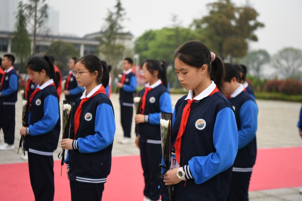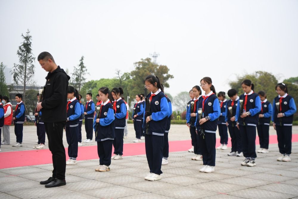 3月30日,长沙市长郡天心实验学校师生在湖南革命陵园烈士纪念碑前缅怀英烈。
