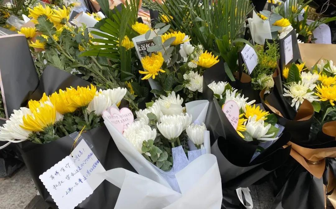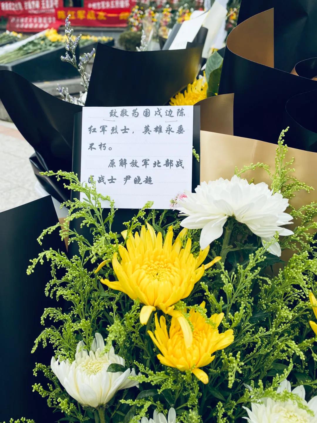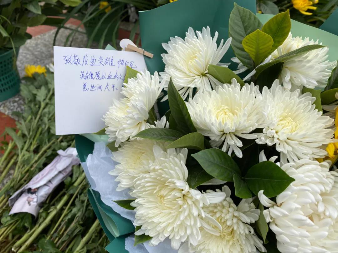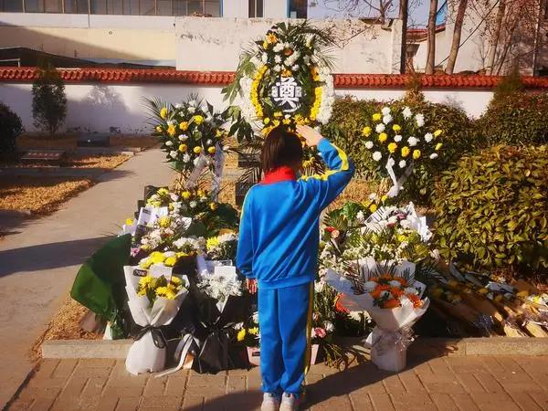 △今天,河南省漯河市烈士陵园,王焯冉烈士的母亲拿着毛巾擦拭儿子的墓碑。墓碑周围是市民敬献的鲜花。图源:环球网