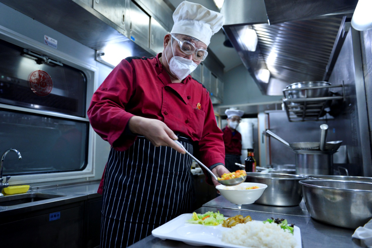 在餐车后厨,他一边娴熟地烹饪菜肴,一边说道:一年又一年,已经数不清经历了多少个春运、暑运和小长假了,这厨师的接力棒也快交了,现在徒弟们干得都比我好,手艺也越来越精,我挺放心的。