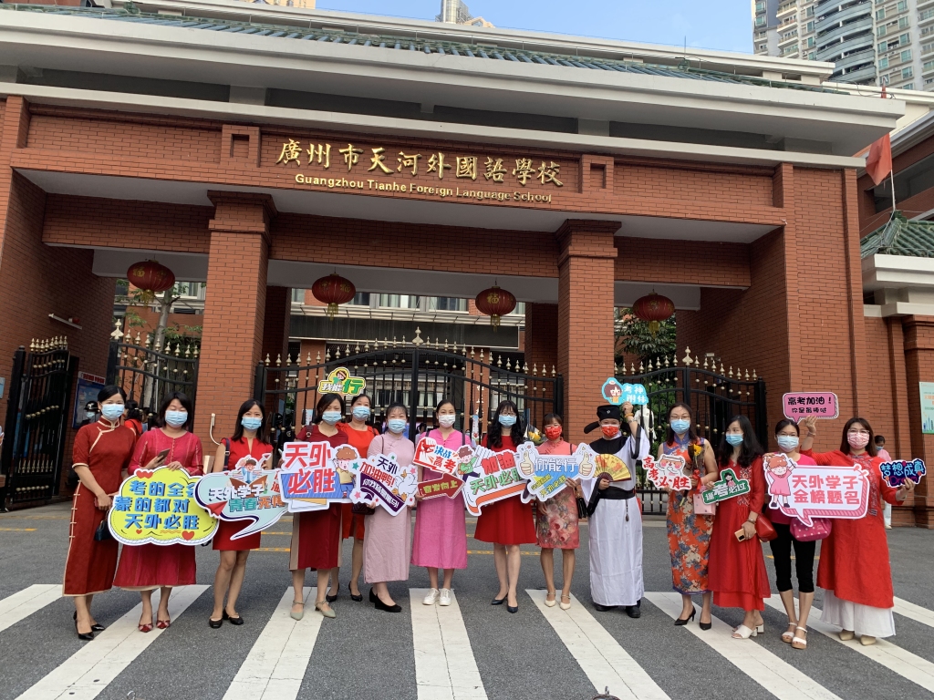 2021年6月7日,在疫情下如期举行的广东省新高考。在广州市天河外国语学校门口,家长为考生送考。