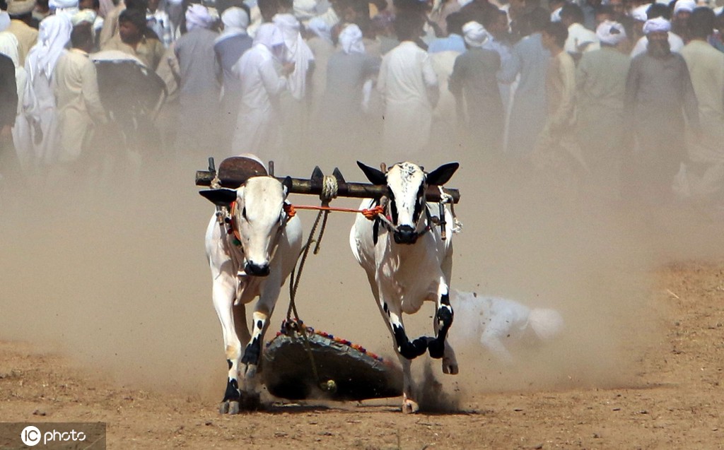 当地时间2021年6月27日,巴基斯坦拉瓦尔品第郊外,当地举行公牛奔跑赛。