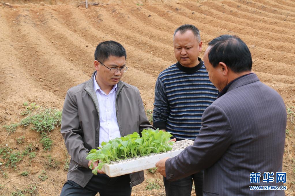 聂金辉(左)在剑川县弥沙乡调研时了解当地产业发展情况(2016年4月28日摄)。新华社发(剑川县融媒体中心供图)