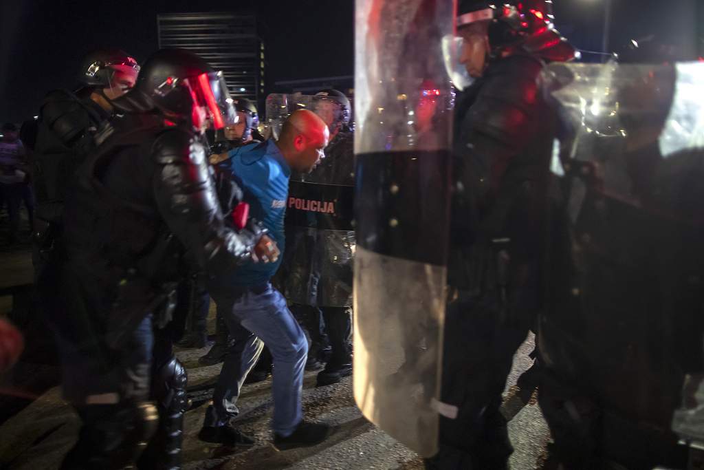 当地时间2021年8月11日,立陶宛首都维尔纽斯,当地街头爆发抗议示威活动,抗议者反对政府歧视未接种疫苗者的措施,执法人员使用催泪瓦斯驱散抗议者。