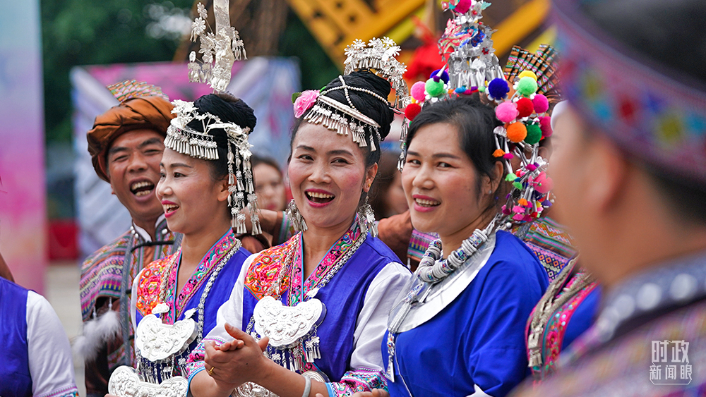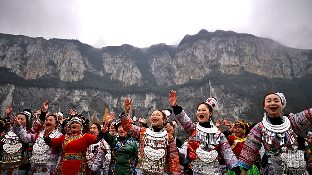 △今年2月,习近平来到贵州化屋村考察,当地村民用欢快的苗家歌舞迎接总书记。(总台央视记者王哈男拍摄)