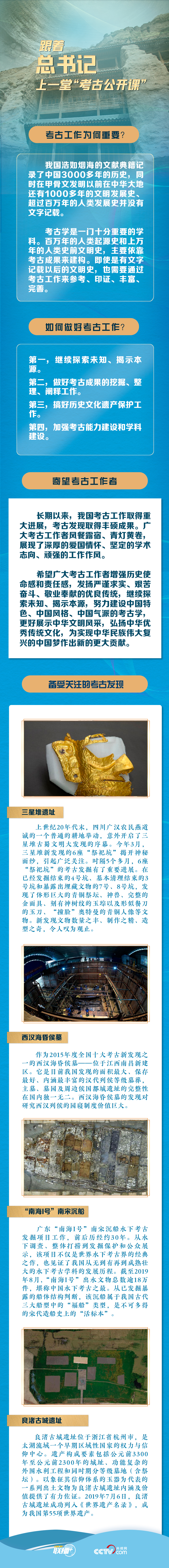习近平总书记高度重视考古和文物保护工作,党的十八大以来,他主持以“我国考古最新发现及其意义”为题的十九届中央政治局集体学习;在地方考察时,对当地博物馆和文物保护单位进行视察,在多个重要场合对考古和文物保护工作作出重要指示……
