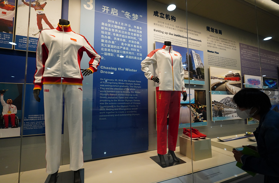 “我们非常期待2022年北京冬奥会领奖服的设计样式和科技创新。”讲解员说。