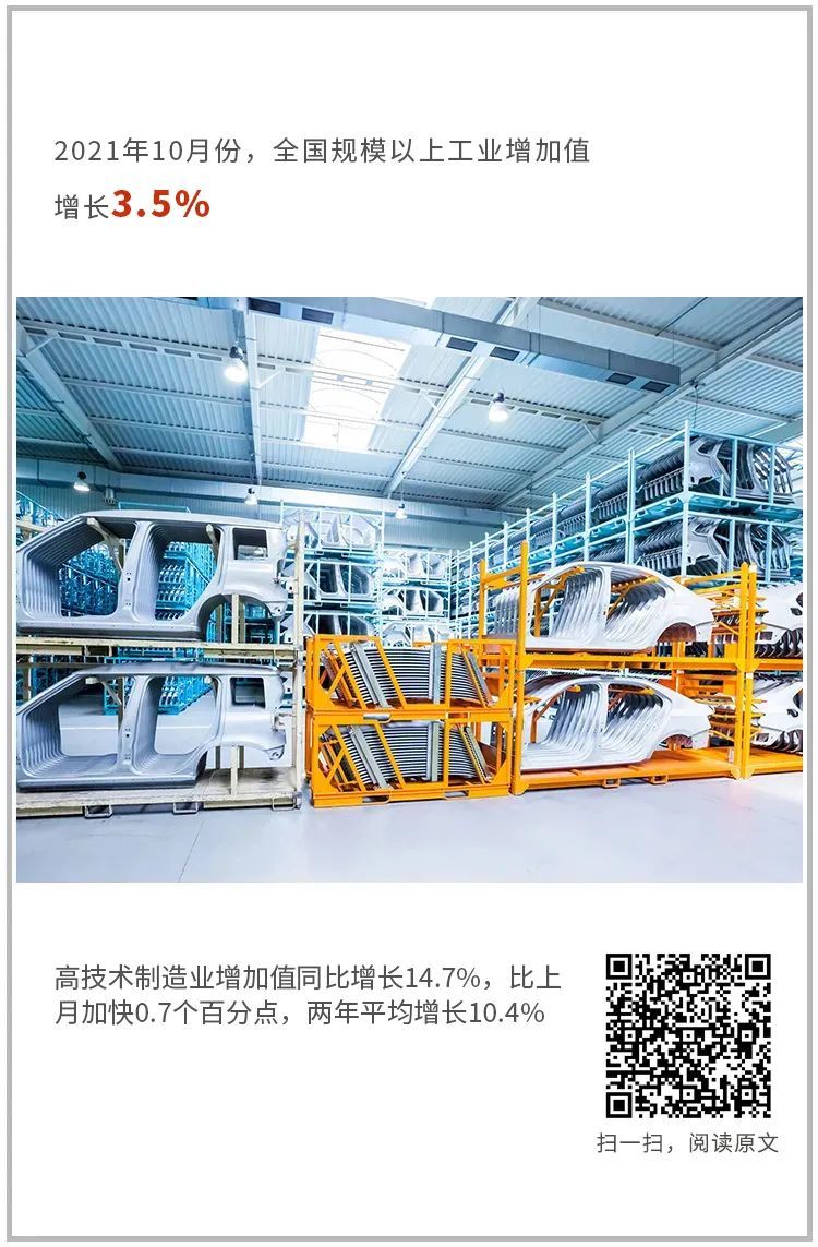 10月份,全国规模以上工业增加值同比增长3.5%,比上月加快0.4个百分点;两年平均增长5.2%,比上月加快0.2个百分点;环比增长0.39%。分三大门类看,采矿业增加值同比增长6.0%,制造业增长2.5%,电力、热力、燃气及水生产和供应业增长11.1%。