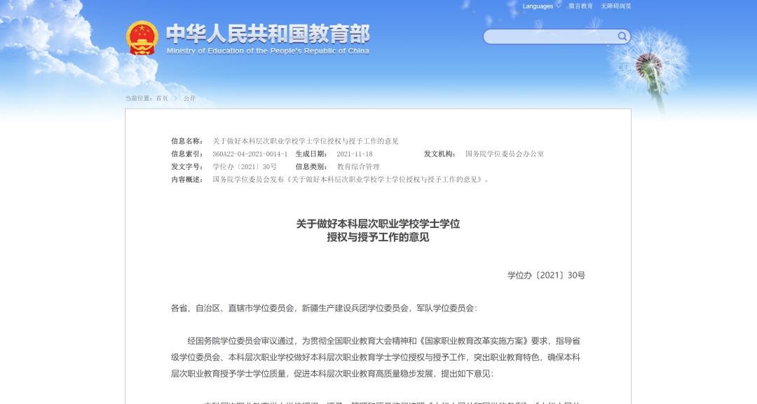 近日,国务院学位委员会发布《关于做好本科层次职业学校学士学位授权与授予工作的意见》,将职业本科纳入现有学士学位工作体系,按学科门类授予学士学位,学士学位证书格式一致。