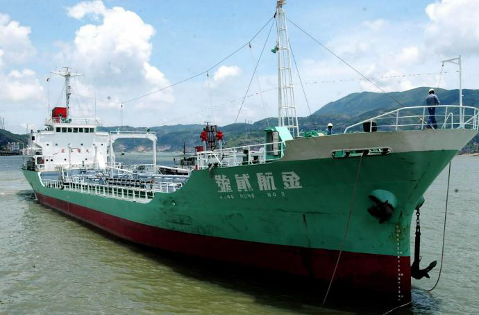 2002年5月4日,马祖“金航二号”运水船徐徐停靠福州马尾码头准备灌装2300吨自来水运往马祖,以缓解马祖地区的严重旱情。新华社记者 张国俊 摄