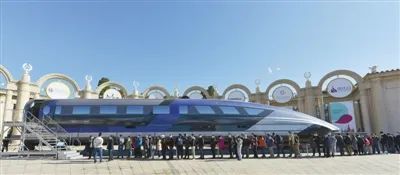 10月27日,在“十三五”科技创新成就展上,时速600公里高速磁浮列车“实车”吸引了众多参观者。人民视觉供图