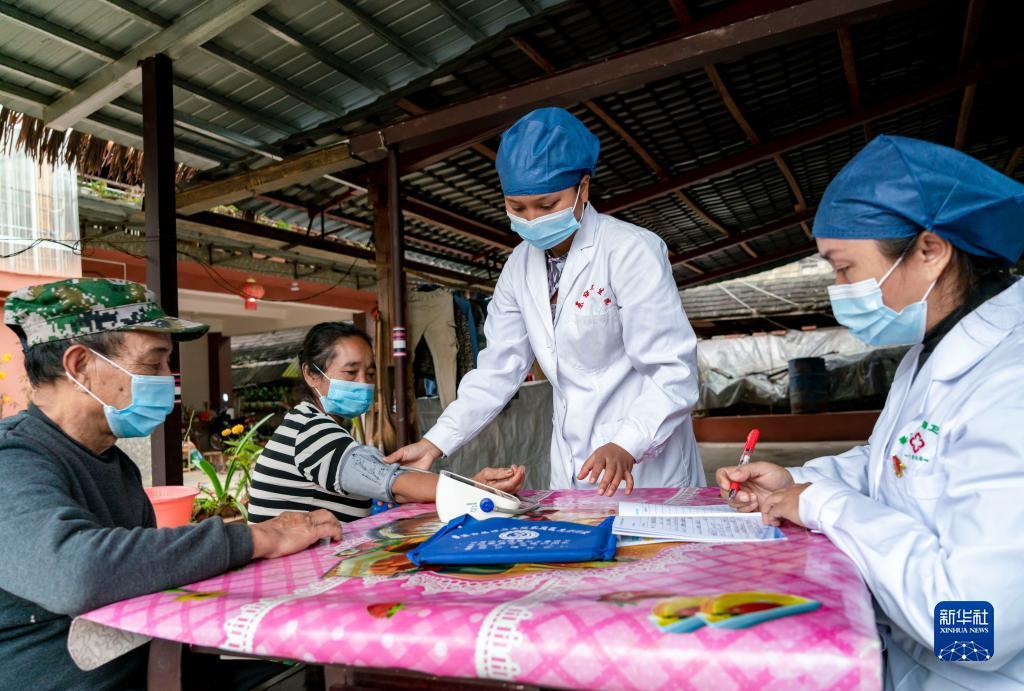 基诺山基诺族乡卫生院的家庭医生为基诺族老年人检查身体(12月13日摄)。新华社记者 陈欣波 摄