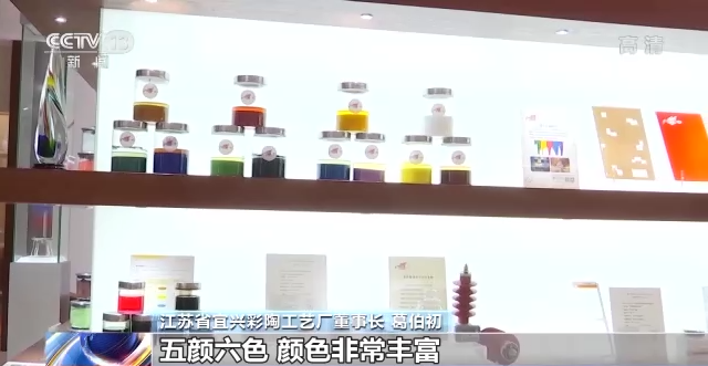 江苏省宜兴彩陶工艺厂董事长 葛伯初:我们以前的产品,釉色很单一,而且不够明亮;再看今天我们的产品,五颜六色,颜色非常丰富。