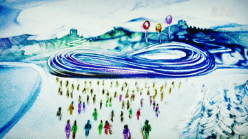 黑龙江省沙画师杨忠华发挥艺术所长,用独特的方式为冬奥打call。