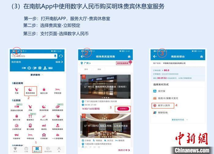 记者14日从中国南方航空公司(以下简称“南方航空”)获悉,南方航空App(以下简称“南航App”)也于近日上线“数字人民币”子钱包支付业务并产生第一笔交易,旅客张女士通过南航App的“数字人民币”支付方式,成功购买从大连飞往武汉的单程机票。