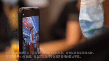 1月17日是春运首日,高原复兴号C881次列车上,旅客与乘务员倾情互动,共同迎接2022年春运,开启高原复兴号在世界屋脊的首次春运。