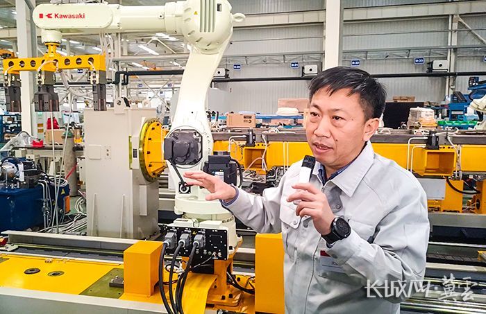 唐山开元集团成员企业开元自动焊接装备有限公司总经理沈亚辉介绍公司情况。长城网·冀云客户端记者 金宗明 摄