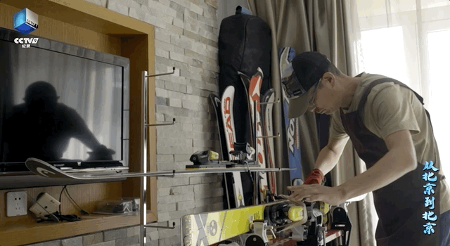 打磨起滑雪板来也有模有样