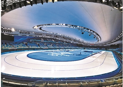 去年冬奥测试赛期间,国家速滑馆就凭借其出色的软硬件条件获得了来自中外运动员和官员们的一致好评。资料显示,“冰丝带”是全球首个采用二氧化碳跨临界直冷制冰的冬奥速度滑冰场馆,其中运用的也是目前中国最大的二氧化碳跨临界直冷制冰系统,该系统兼顾绿色和节能要求。据了解,二氧化碳是天然工质,环境友好,其臭氧消耗潜值(ODP)为零,全球变暖潜值(GWP)为1,而制冰过程中产生大量高品质余热则通过冷热联供一体化设计进行回收利用,用于场馆的热水、浇冰、除湿等场景,相比较传统冰场可以有20%以上的能效提升。此外,“冰丝带”的冰面温度均匀,整个温差不超过0.5℃,这也有利于运动员创造好的成绩。