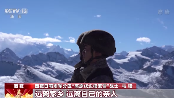 西藏日喀则军分区“高原戍边模范营”某连新战士 马锋:远离家乡,远离自己的亲人,心中有万分的不舍。但是我知道,作为一名军人,穿上这身军装,我就应该履行好自己的责任,我相信我的父母会理解和支持我的,我穿上这身军装就是肩负使命,我就应该在这个5592这个哨点、这个战位,我相信我的父母也会为我感到骄傲和自豪的。