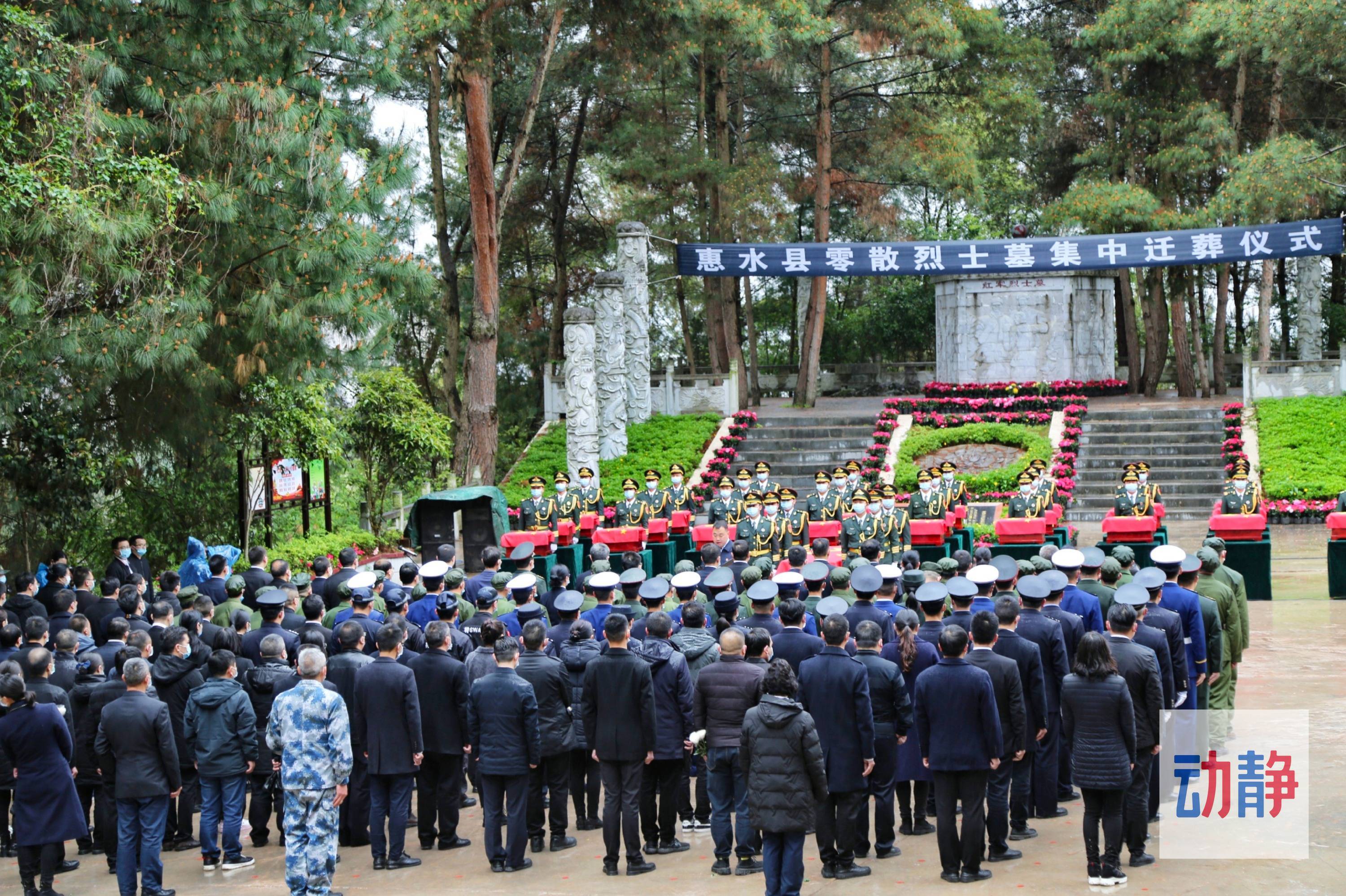 4月1日上午,贵州省惠水县举行庄重的集中迁葬仪式,将散葬于惠水县好花红镇、断杉镇、王佑镇以及长顺县广顺农场附近的59名烈士迁至惠水县烈士陵园集中安葬。