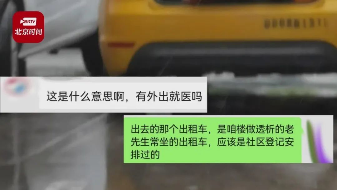 老人岁数大了,再不透析的话,也是有生命危险的。因为咱们这儿是管控小区,他女儿来不了,也进不来小区,跟社区的人沟通后,办了出入证。这老爷子十多年了,一直透析,一直是这个出租车司机。