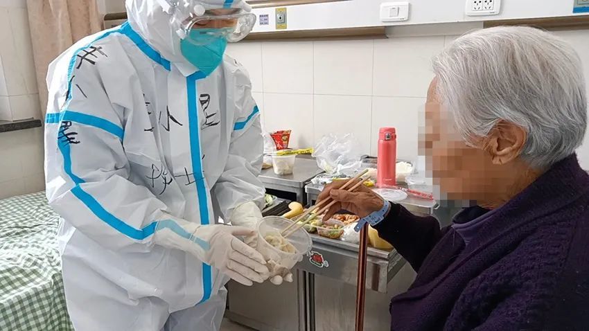 进入专区后,医疗队对李奶奶进行了全面体检,并对其状况进行综合评估,制定个体化治疗方案。除了常规医疗救治、生活护理以外,医护人员还对李奶奶进行了心理舒缓辅导,根据其营养状态调整食谱。医疗队通过医患家属沟通微信群,及时与李奶奶家属电话沟通病情,并将其详细入院状况评估报告一对一传送给家属。