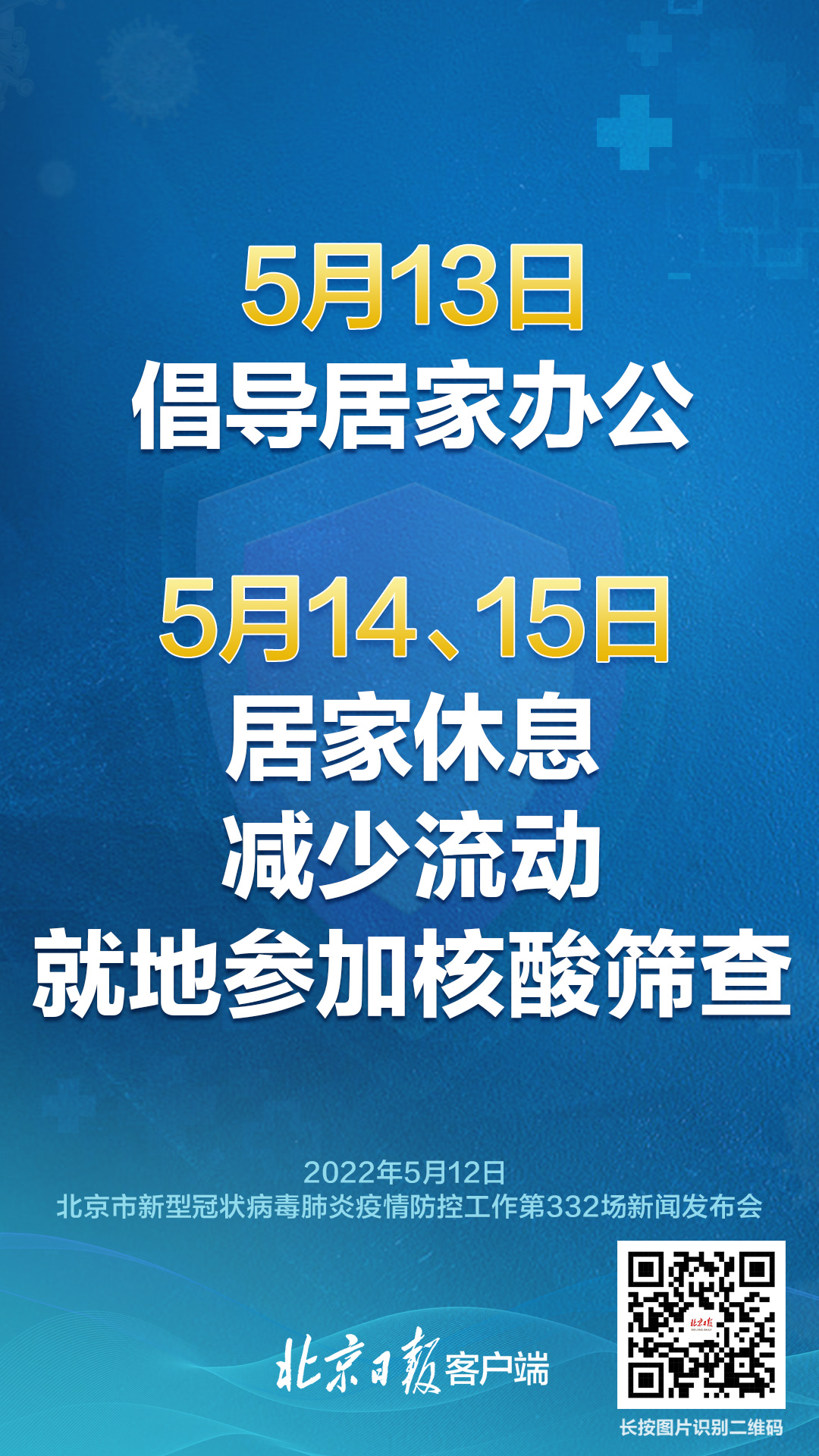 一是核酸筛查期间,13日(周五)倡导居家办公,14日、15日(周六、周日)居家休息,减少流动,就地参加核酸检测。
