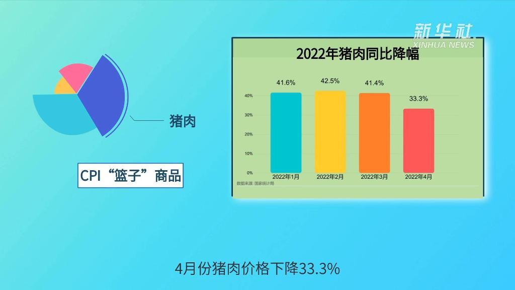 我国CPI“篮子”商品中,猪肉价格占比较大。今年以来,猪肉价格持续大幅下行,3月同比下降41.4%,4月份,猪肉价格下降33.3%,降幅比上月收窄8.1个百分点。