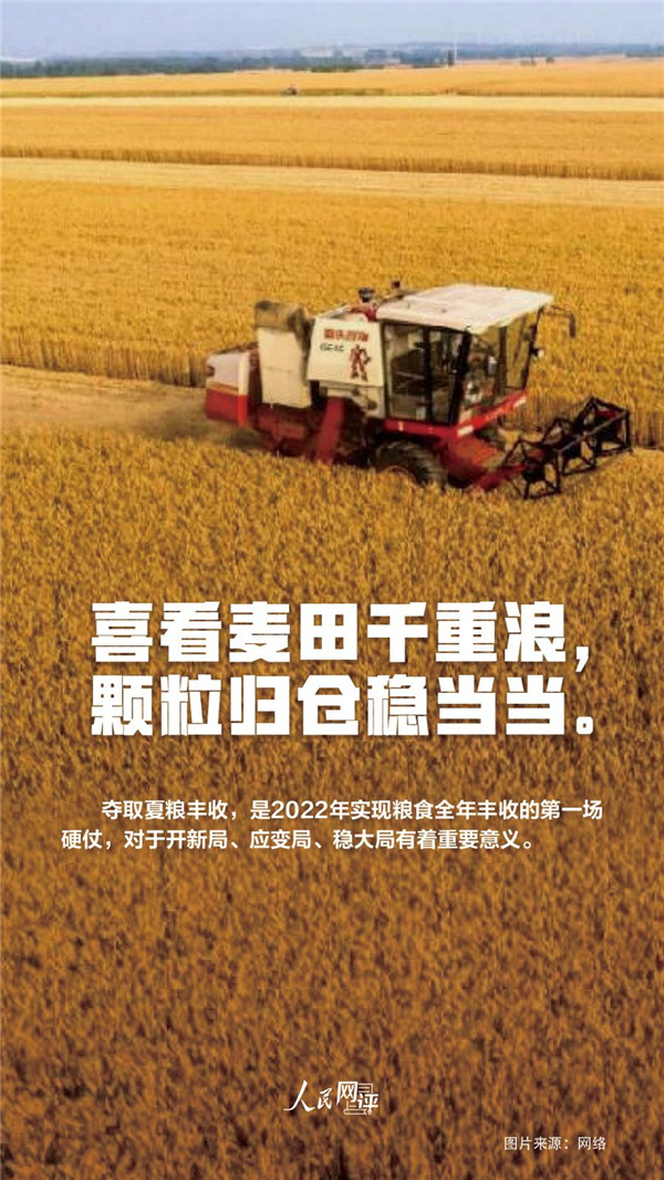 夏收时节,麦浪滚滚,麦香阵阵。大忙时节,农户们抢收抢种、加强田间管理,为全年增产丰收打好基础。一台台收割机穿梭在金黄的麦田,一株株麦穗脱粒后运回粮仓,广袤田野上,一幅金灿灿的夏收画卷铺展。