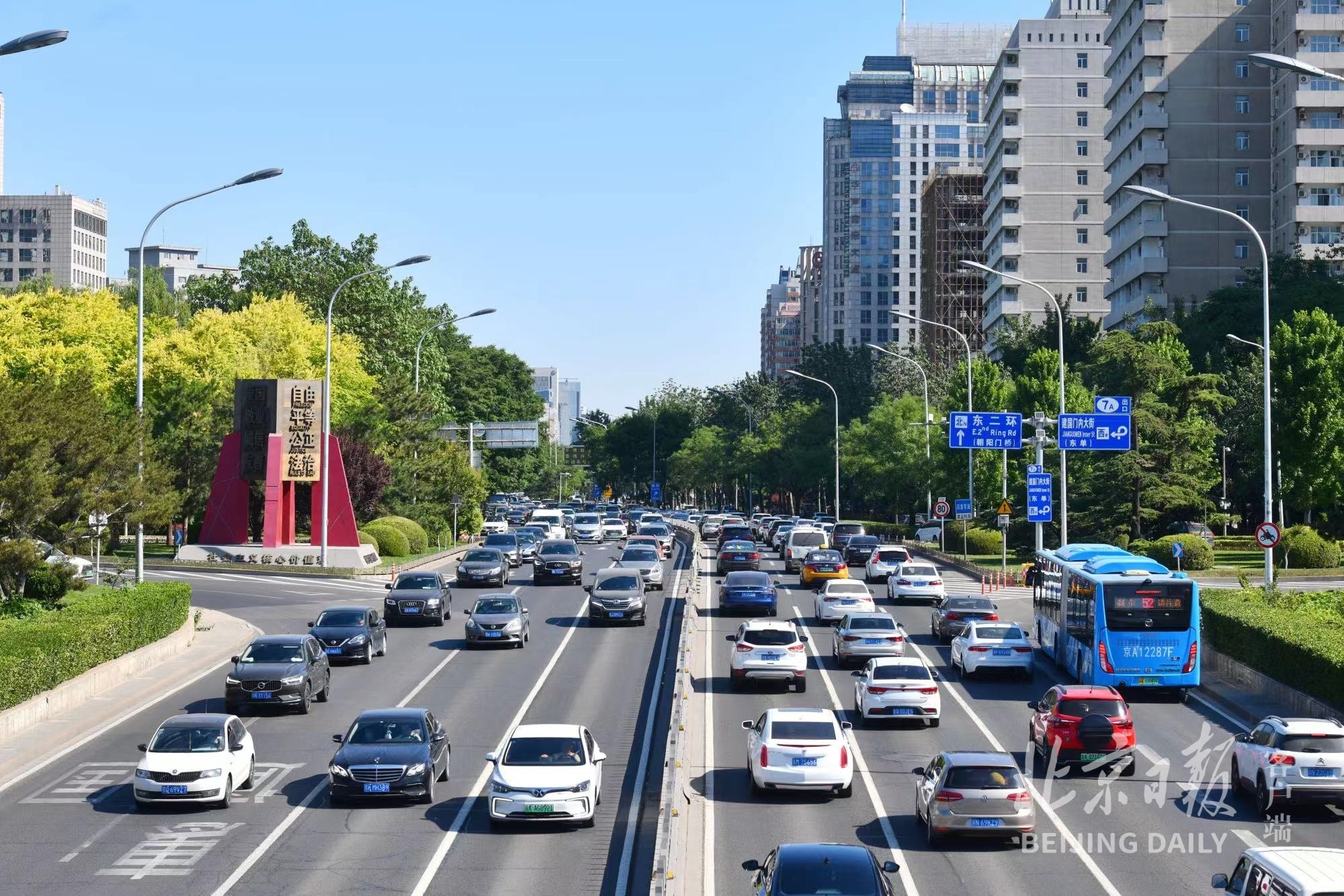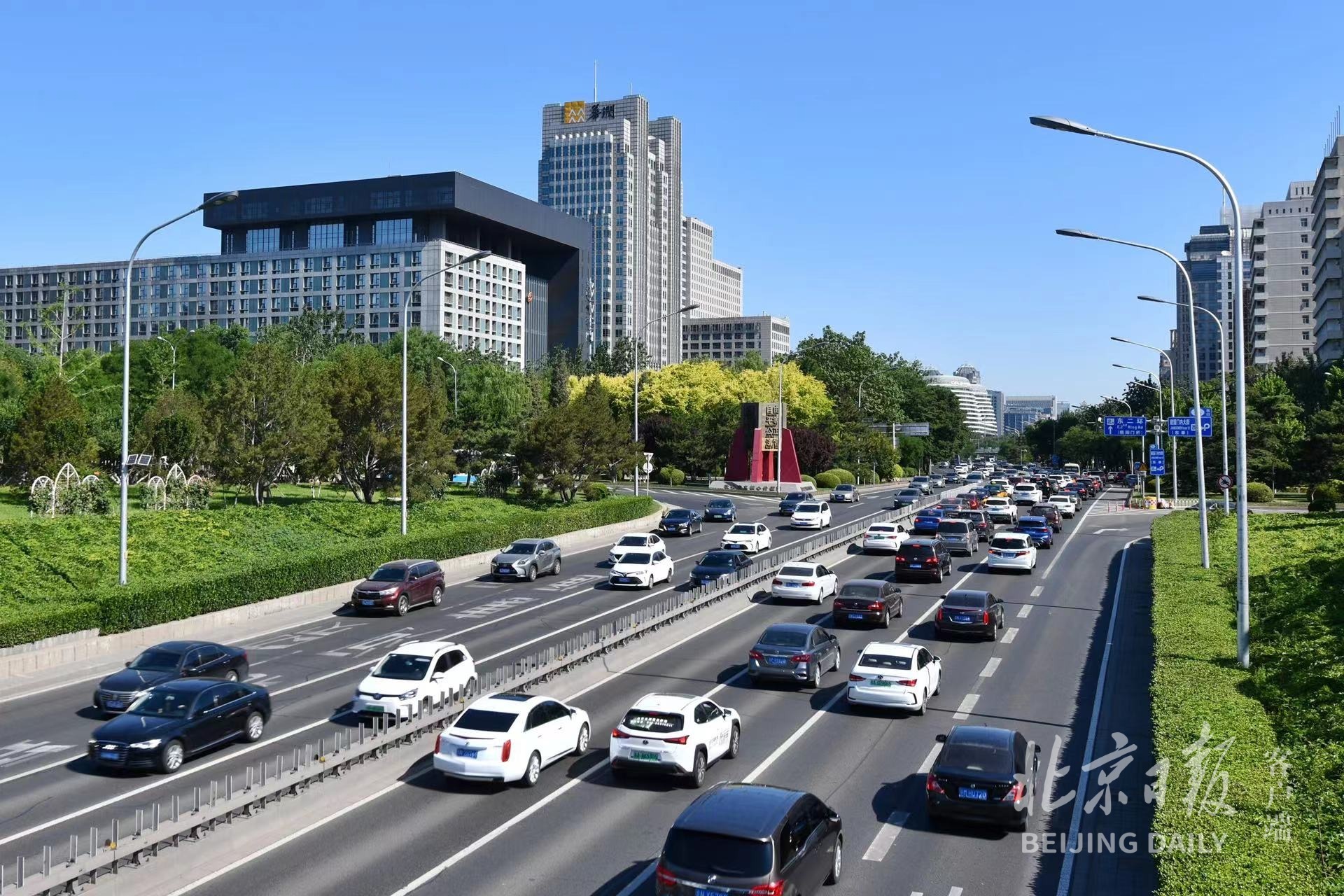 今天早高峰,长安街东向西进城方向车流不断,虽然没有出现明显拥堵,但熟悉的繁忙节奏又回来了。