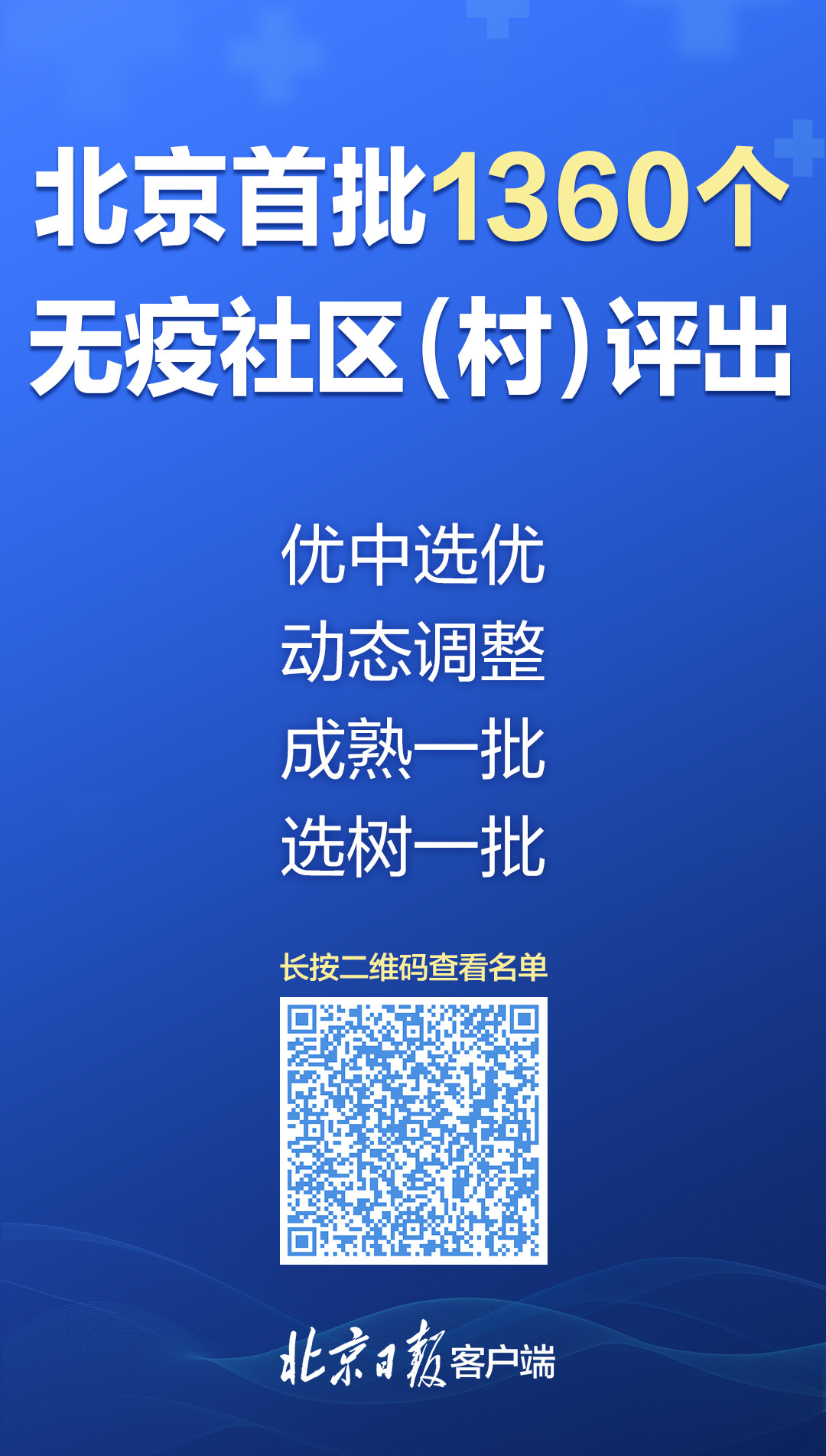 1360个社区(村)从全市7127个社区(村)中脱颖而出,成为首批无疫社区。创建无疫社区需有14项硬指标,评分需达到85分以上;首批无疫社区当选的秘笈,正是在严格卡口管理、规范管理居家隔离和健康监测人员、完善疫情防控应急体系等方面,都取得了优秀的成绩。公布首批无疫社区名单,就是要充分发挥先进典型的示范带动作用,激励更多的社区(村)积极投入到创建工作中。