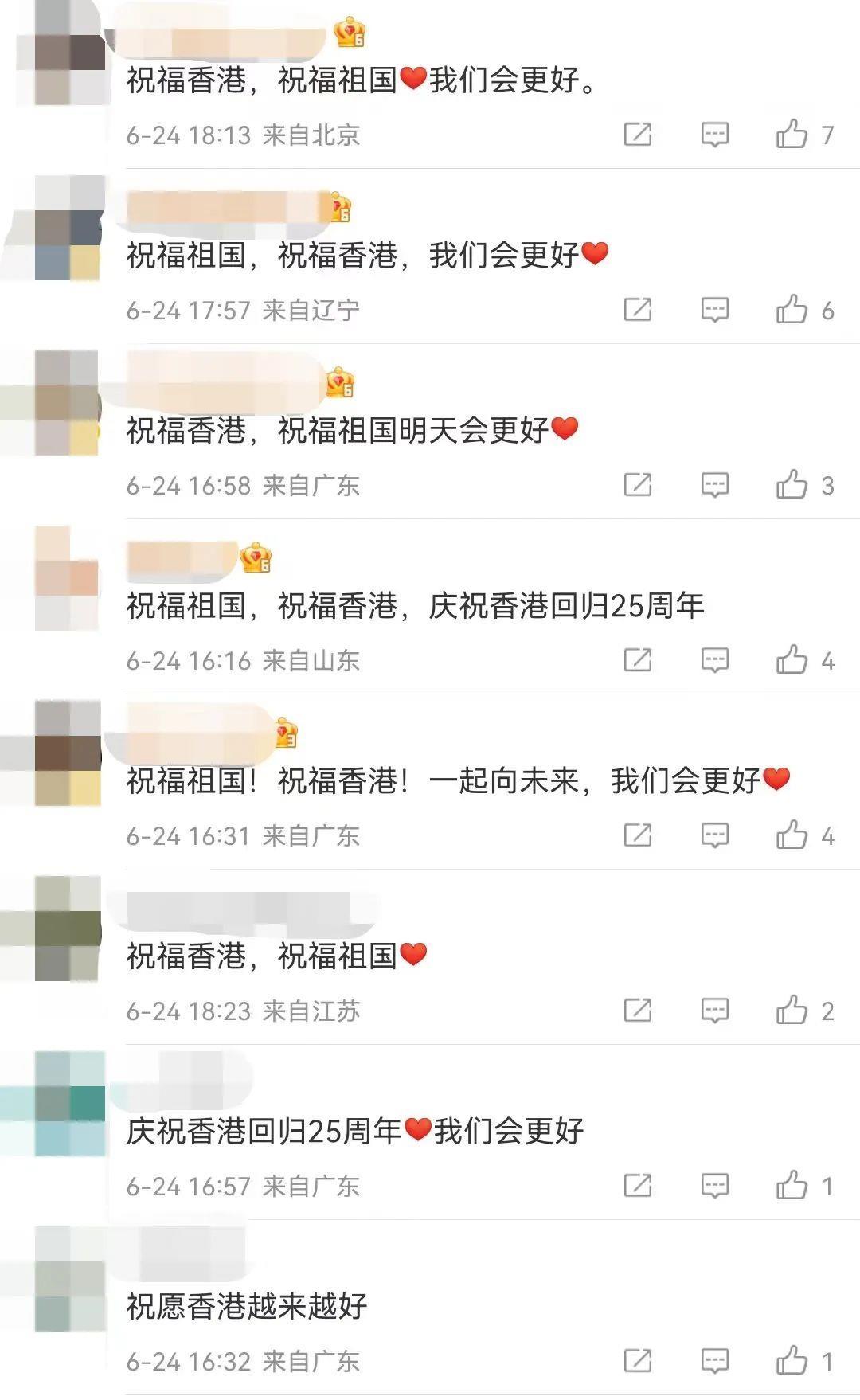 国内网友也纷纷表达着对“东方之珠”的美好祝福,真真正正是手拉手、心连心,内地香港一家亲。