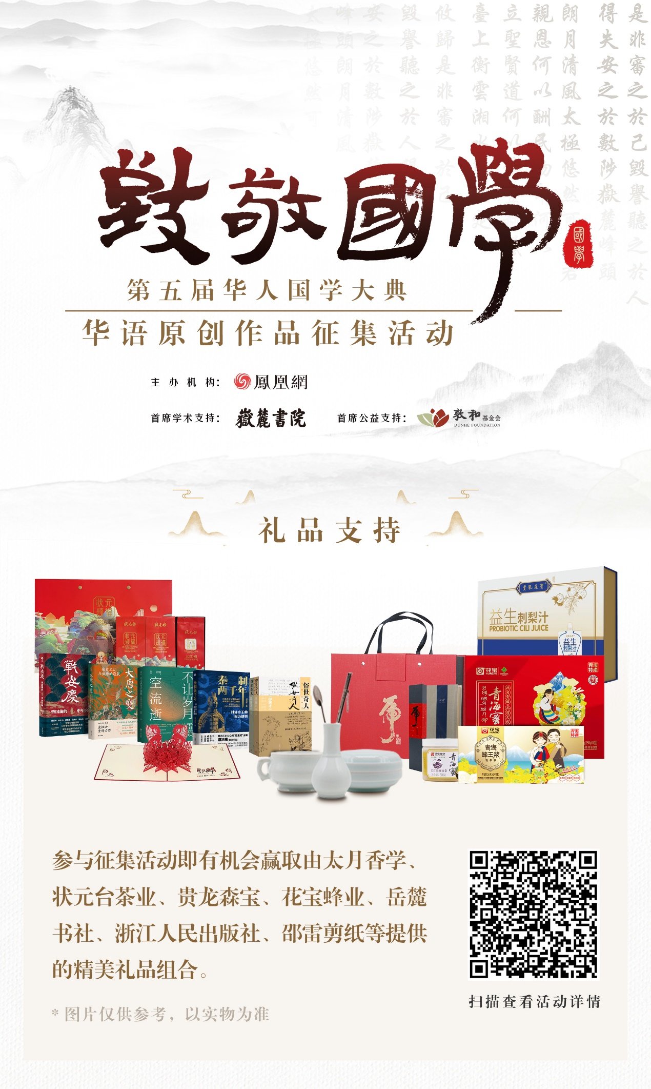 为增进广大网友对中华文化的认同感,推动中华优秀传统文化在当代的传承弘扬与转化应用,由凤凰网主办的“致敬国学:第五届华人国学大典”,现面向海内外,以“亲近传统 重建斯文”为主题,有奖征集原创文章或原创短音视频,分享与中华文化、中华传统相关的非虚构故事、学习研究心得,或者形象展示传统文化实践体悟、创新应用的成果。