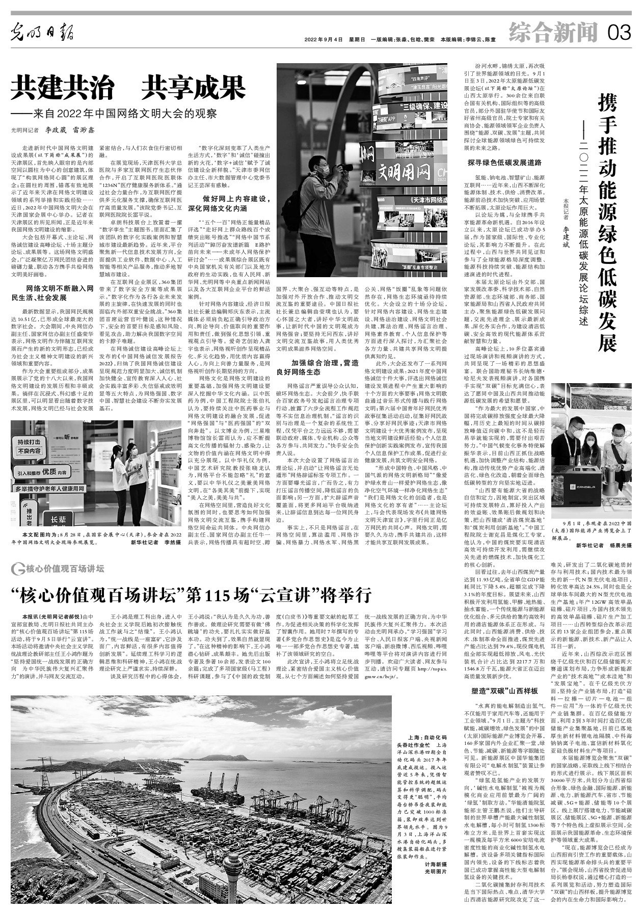 “形成中国特色、中国风格、中国气派的网络文明新格局”“像爱护绿水青山一样爱护网络生态,像净化空气环境一样净化网络生态”“我们是网络文化的创造者,也是网络文化的享有者”……主论坛上,与会代表现场发布《共建网络文明天津宣言》,字里行间正是亿万网民的共同心声。网络文明,需要久久为功,携手共建共治,这样才能共享互联网发展成果。