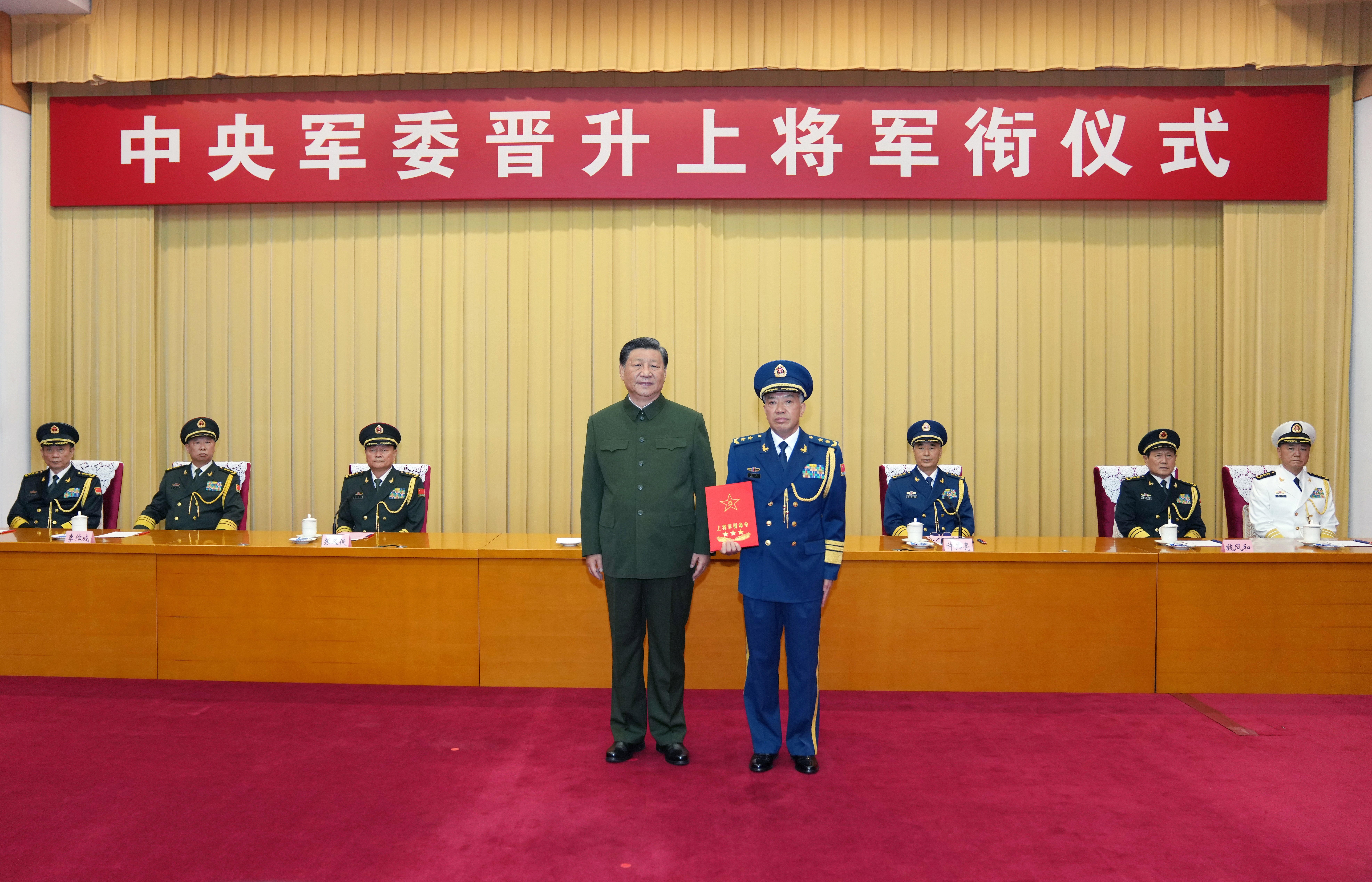中央军委晋升上将军衔仪式8日在北京八一大楼举行。中央军委主席习近平出席晋衔仪式。