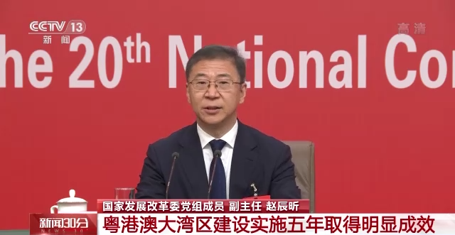 国家发展改革委党组成员 副主任 赵辰昕:大湾区建设实施五年来,取得了明显成效,“1+N”规划政策体系逐步构建。横琴、前海和南沙、河套等重大合作平台深入推进。国际科技创新中心建设稳步推进,现代产业体系加快构建,基础设施互联互通提速提质,港澳居民在内地生活发展更加便利。