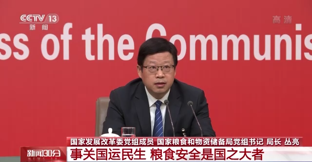 国家发展改革委党组成员、国家粮食和物资储备局局长丛亮从五个方面介绍了我国目前的粮食安全形势。