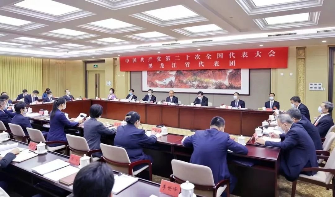 18日,出席中国共产党第二十次全国代表大会的黑龙江省代表团在驻地召开全体会议,学习讨论党的二十大报告、十九届中央纪委工作报告、党章修正案。