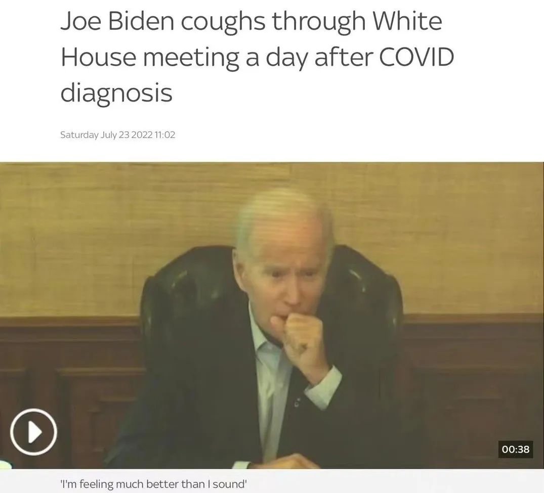 2022年7月21日,拜登感染新冠。次日,拜登仍然在工作,在白宫举行视频会议,与经济团队讨论油价问题,随后社交平台上公布了会议的部分画面。