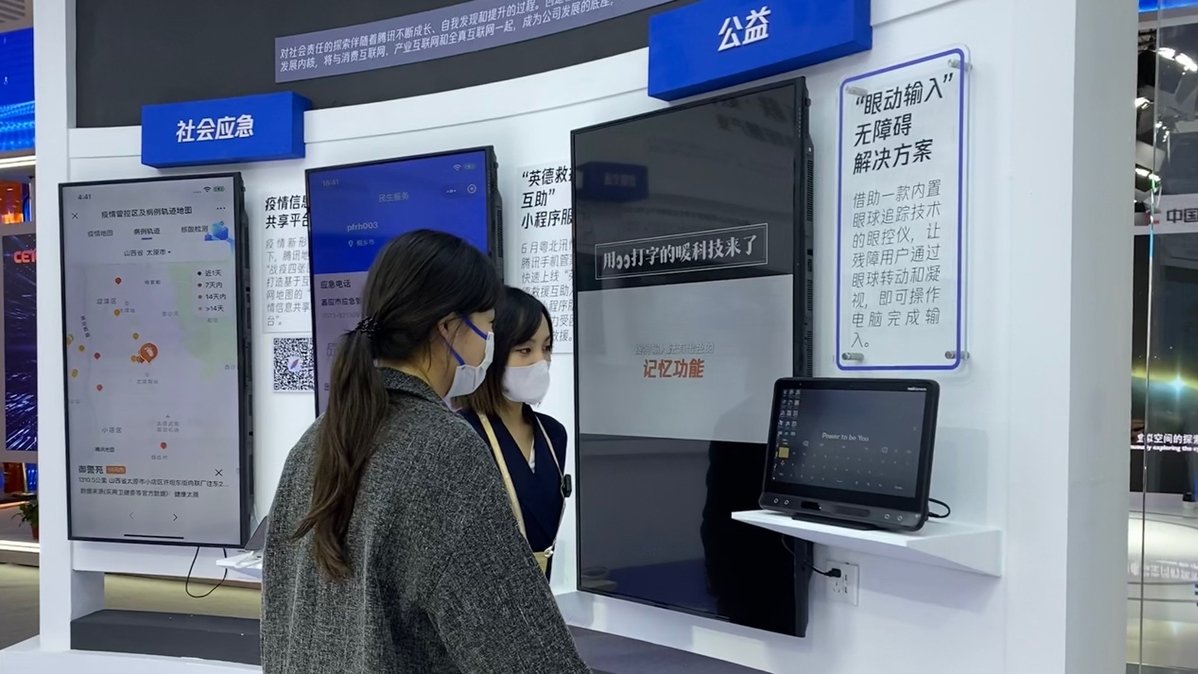 在展区内,一款可以用眼睛打字的“眼动输入仪”吸引了人们的关注。仪器能够精准捕捉用户的眼球滚动,从而实现打字功能。