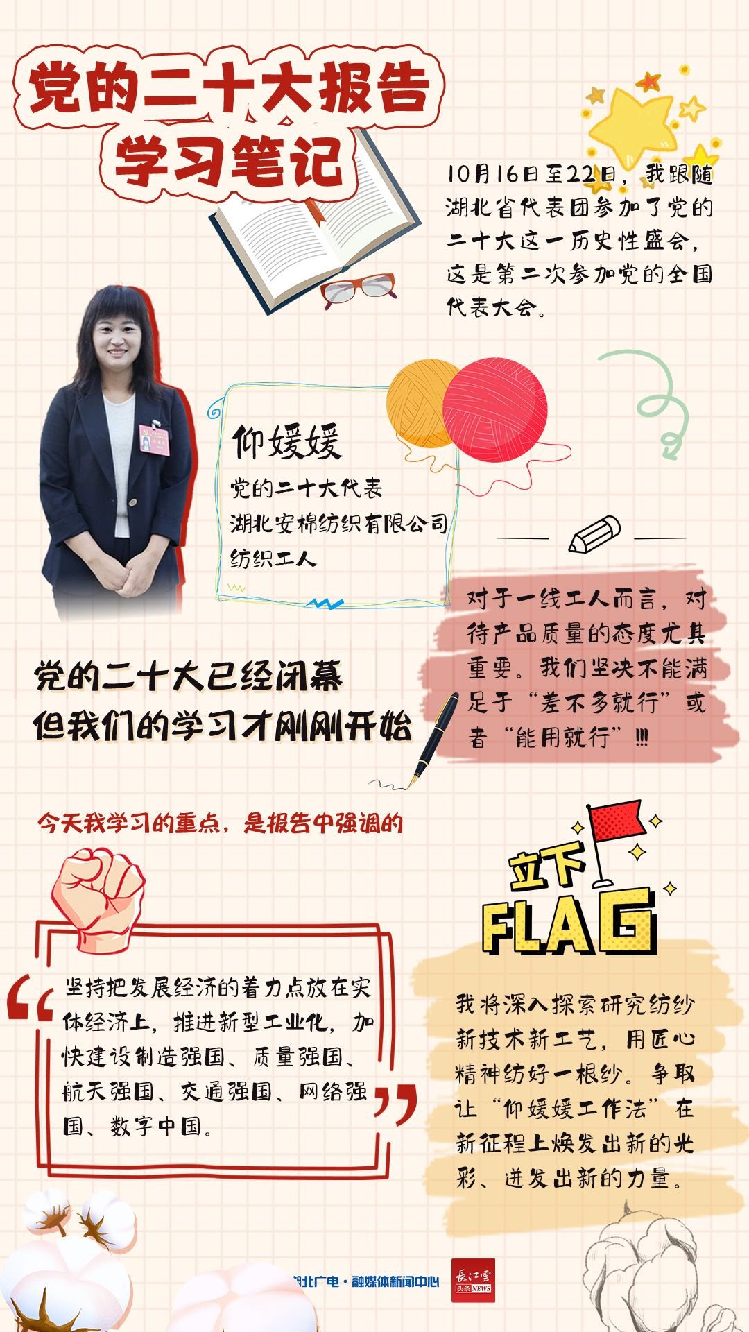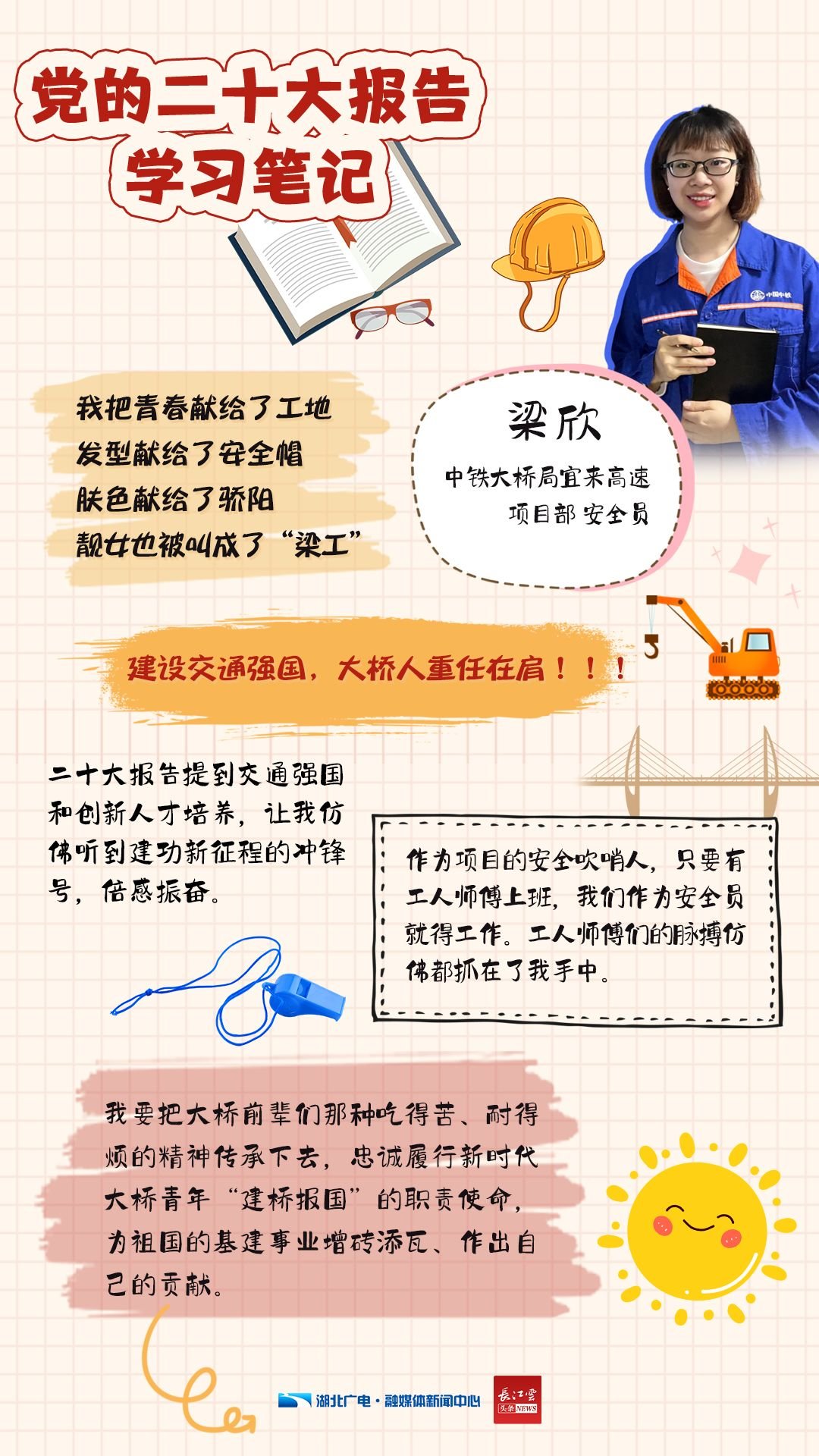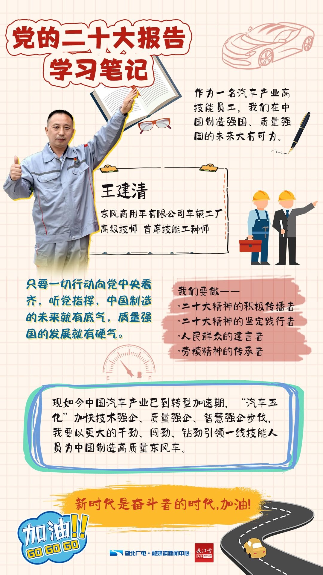 即日起,湖北广电融媒体新闻中心开设《二十大报告学习手账》专栏,和你一同翻开湖北党员干部群众的学习笔记,了解他们的期盼与心声。今天,我们推出第一期《二十大报告学习手账——新时代工人篇 》。