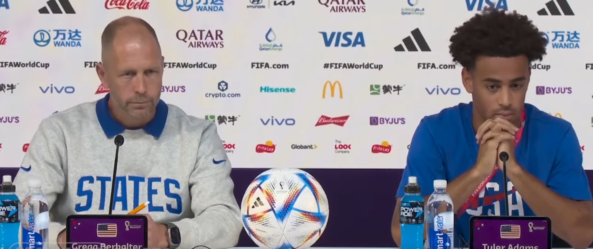 美国队主帅贝尔哈特和队长泰勒·亚当斯随后出场。将近30分钟的发布会上,伊朗记者近乎占据了所有的提问。