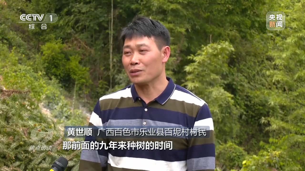 广西百色市乐业县百坭村村民 黄世顺:之前九年投入也是蛮大的,树成林以后不用投资多少了,如果被便道征用以后,那前面的九年来种树的时间、投资各方面都回不来了。