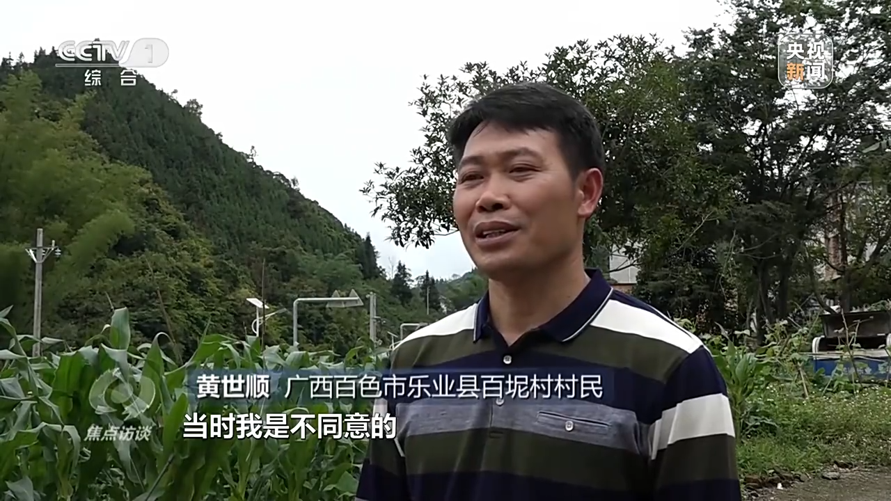 广西百色市乐业县百坭村村民 黄世顺:当时我是不同意的,驻村第一书记和村里面的工作队员经常到我家来做思想工作,也带来政府的补偿方案,补偿款也到位了,还帮我争取了在工地务工的机会。驻村干部跟村干部就跟我们说,建设高速路为我们地方以后的经济提供方便,所以经过他们的开导,我们就同意把地租出去了。