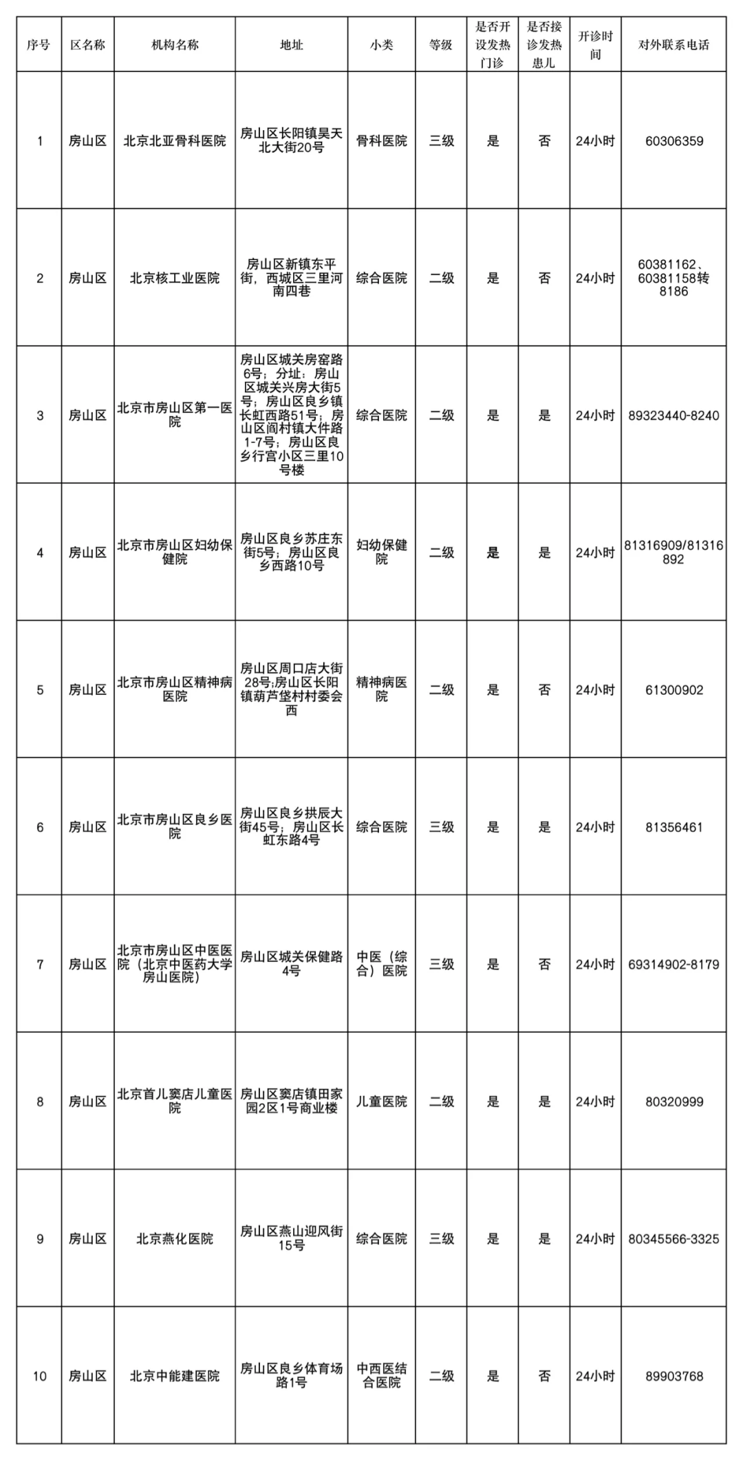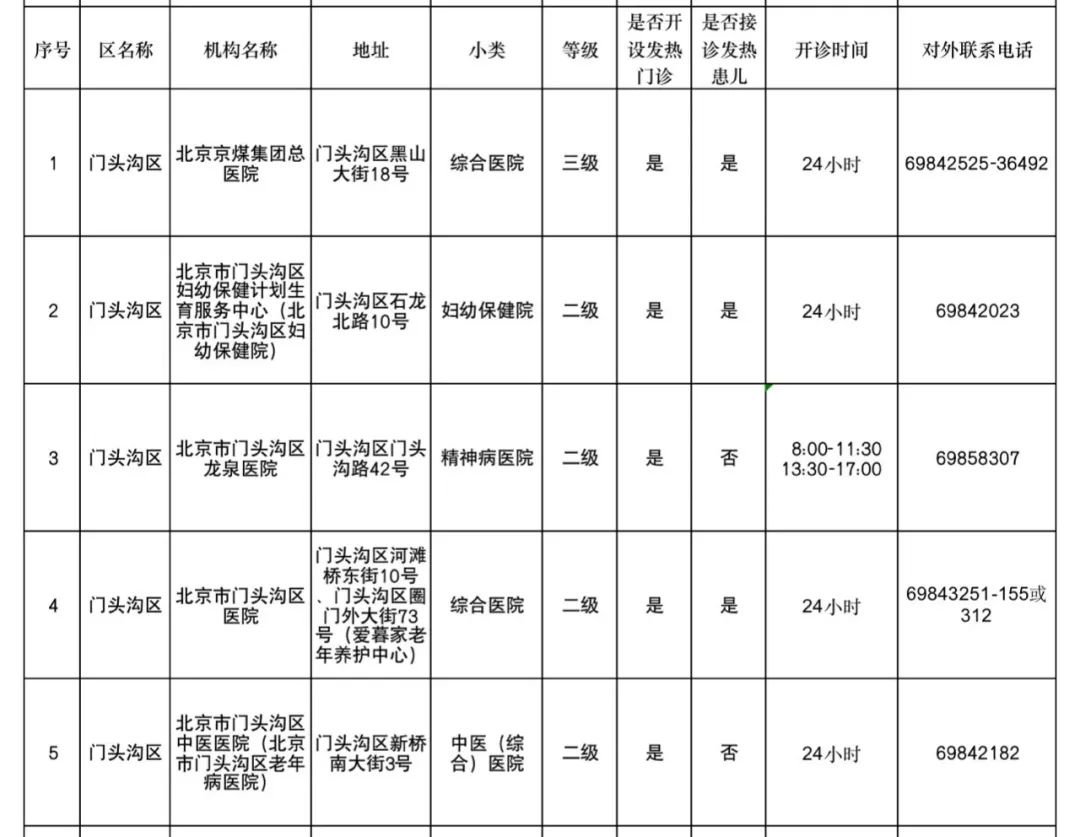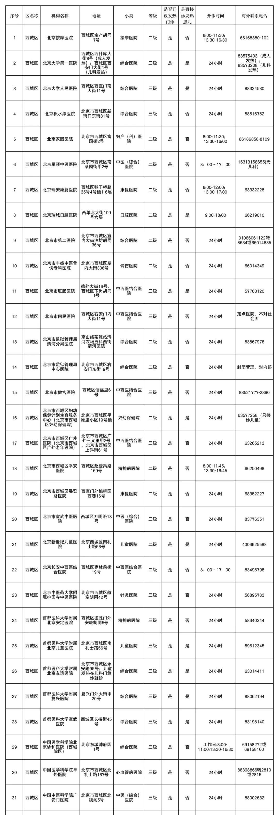 为方便群众就医,北京市卫健委汇总并公布了截至12月10日各区卫生健康委报告的二级以上医院发热门诊(诊室)设置名单信息。